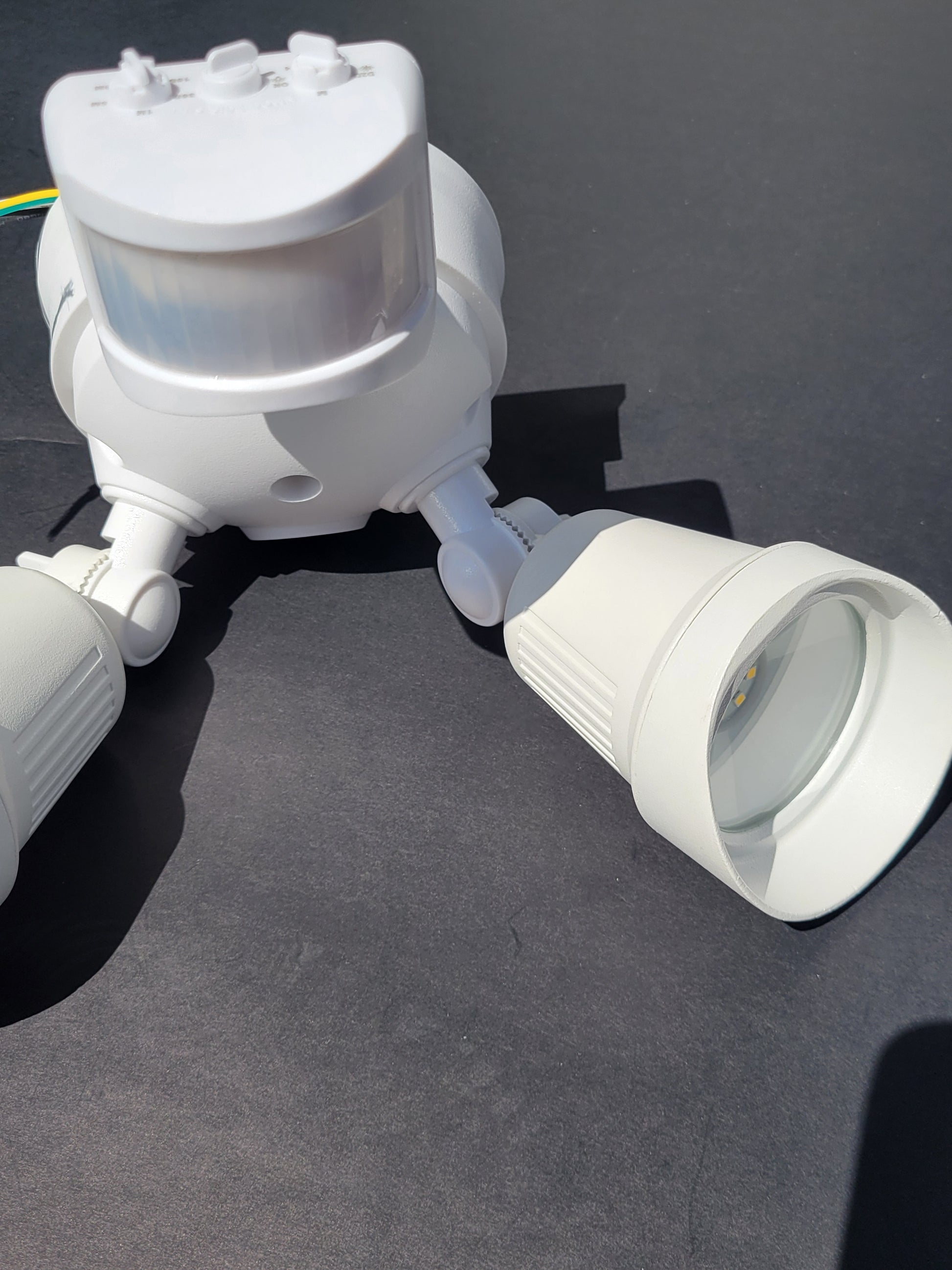 This reliable dual-head LED floodlight provides dependable outdoor illumination, motion activation, and customizable sensitivity—making it ideal for enhancing safety and visibility around your home or business.